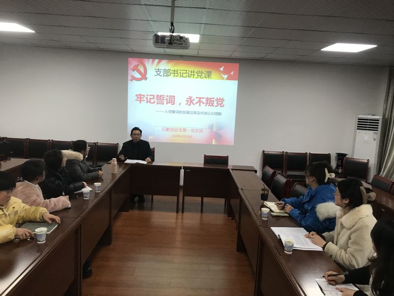 第一党支部书记柴方松以《牢记誓词,永不叛党》为题,从大革命,土地革命时期、抗日战争时期、解放战争时期、新中国成立前后、党的十二大以来五个阶段阐述了入党誓词的变化与发展,用生动具体的实例引导党员们认识与理解不同阶段入党誓词的时代背景和深刻意义。柴方松还从党员政治信仰的标高和底线以及党员“四讲四有”合格标准来解析了入党誓词,教育引导党员要牢记入党誓词,不忘并践行自己曾经宣誓的责任和义务,守住初心、坚定理想信念,争做表率,充分发挥模范带头作用。