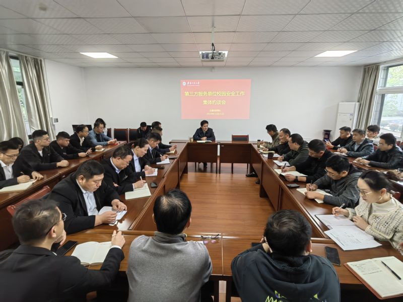 为了进一步落实学校安全管理工作部署,强化后勤服务安全意识,10月21日,后勤保障处召开第三方服务单位校园安全工作集体约谈会。后勤保障处副处长李四军、高潮,相关科室负责人及物业、食堂、超市、快递、理发店、维保单位、宿舍服务单位等31家第三方服务单位参加会议。会议由后勤党总支书记张开炳主持。