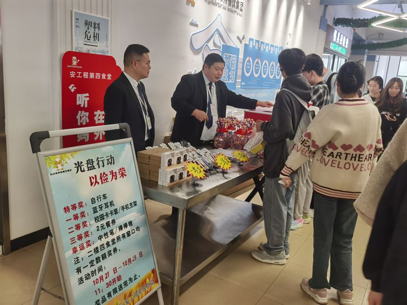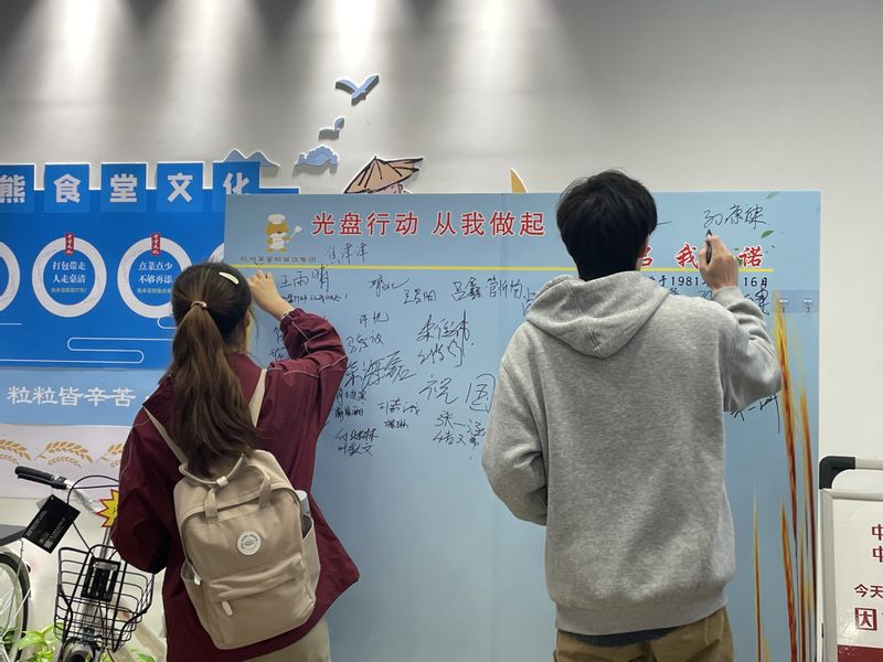 爱粮节粮,我们在行动。爱粮节约粮食不仅是一种美德与观念,更是一份责任与义务。10月21日-23日,第四食堂开展“光盘行动,以俭为荣”主题活动,通过光盘打卡、签名墙光盘承诺、光盘抽奖等形式多样的活动吸引了近2000人次参与,现场气氛热烈,物联网211的刘超表示,“作为当代大学生,我们应该以身作则,积极发扬勤俭节约的优良传统,带动身边人参与到节约粮食反对浪费的行动中来,形成厉行节约、反对浪费的良好风尚。”