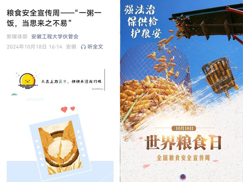 粒粒皆辛苦,青春共守护。新时代大学生不仅是节约粮食的践行者,更是中华民族勤俭节约精神的弘扬者。学生伙管会充分利用微信公众号、QQ公众号等新媒体平台,积极开展世界粮食日和全国粮食安全宣传周主题宣传;在第二课堂开展“一起学粮‘识’,不负好‘食’光”线上主题活动,2000余人次观看了粮食安全相关视频,参与的同学通过完成节粮答题、兑换测评证书等环节不断深入领悟“一粥一饭,当思来之不易;半丝半缕,恒念物力维艰”内涵,“线上+线下”系列活动像是一台播种机,在每一位参与者的内心种下了珍惜粮食的种子,增强了大学生传承和延续勤俭节粮的优良传统意识。