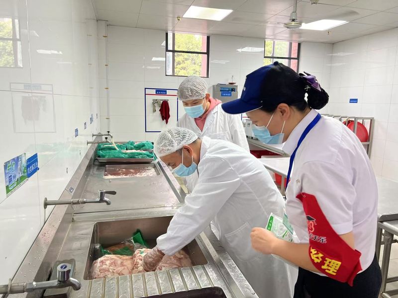 强化食品安全,牢牢守住底线。学校认真贯彻落实习近平总书记重要讲话精神,树立和践行大食物观,狠抓食品安全管理,每周固定式开展“以案示警”典型案例警示教育、食堂工作例会、晨会,让食品安全深入人心。每周常态化开展食品原材料检查,重点围绕粮食采购、加工、制售和消费等环节,督促食堂科学管理,节粮减损,引导消费者厉行节约,反对浪费。定期召开供应商会议,控制好食品源头关。宣传周期间,监管部门针对“昆明一学校食堂肉品异味”案例,强化食品运输存储规范管理和检查,通过发现一个问题解决一类问题,牢牢守住食品安全底线。