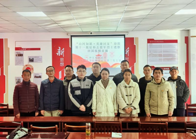 11月28日,后勤党总支三支部与神东社区党委共建支部党员在社区会议室集中观看第十一批在韩中国人民志愿军烈士遗骸归国仪式。