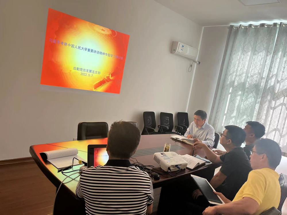 2022年5月7日,后勤总支五支部在204党员活动室召开了党史学习及思想政治理论学习会,支部全体党员参加了学习。会议由支部书记胡长新主持。 胡长新领学了习近平《在中央政协工作会议暨庆祝中国人民政治协商会议成立70周年大会上的讲话》(《求是》2022/06)、《关于推动党史学习教育常态化长效化的意见》等重要论述,集中收看了习近平考察中国人民大学的视频。学习强调,全体党员同志要在学习过程中积极谋划如何为师生办实事,要在各自的岗位上将学习与工作紧密结合起来,做到学史明理、学史增信、学史崇德、学史力行,主动担当作为,为实现学校人才培养高质量发展做出新的贡献。 胡长新强调,教育是国之大计、党之大计。习近平总书记考察人民大学,既饱含着对人民大学的殷殷期待,也彰显了对我国高等教育的高度重视。作为基建办的一名党员,要有担当精神,同时要有廉政自律的意识,要依法依规办事,扎实推进校本部“十四五”基建项目。