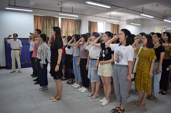 最后,全体党员来到学院党员活动室重温入党誓词,在汪张林带领下,大家面向党旗,高举右手,庄严宣誓。