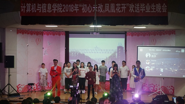 6月8日晚,计算机与信息学院“初心未改,凤凰花开”欢送毕业生晚会在学术报告厅隆重举行,院党委书记邬海量、院长汪军、院党委副书记章靖平、副院长刘涛、院团委书记马晓琼、辅导员葛伟阳、王鸣娟观看了本场晚会。