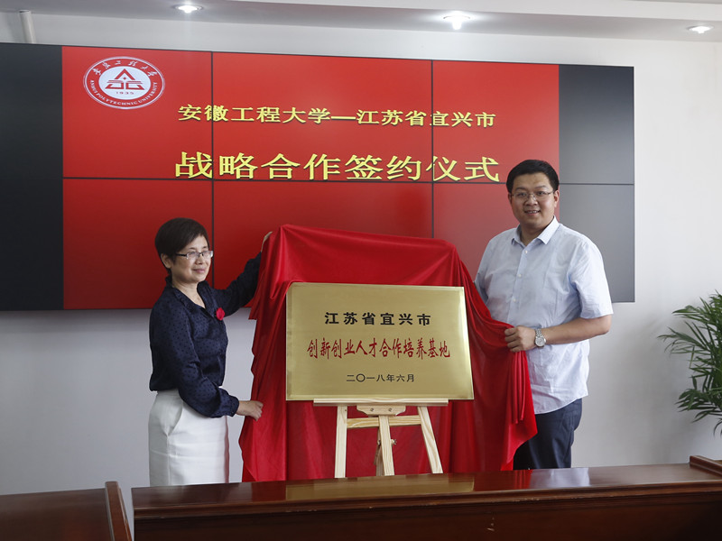 随后,苏国红与张京宁共同为“江苏省宜兴市创新创业人才合作培养基地”揭牌,校学生处处长张开炳与宜兴市人社局副局长王建伟签订了战略合作协议。