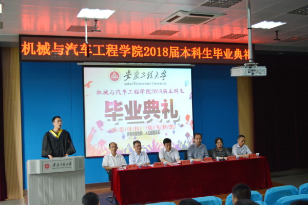 毕业典礼在雄壮的国歌声中拉开了序幕,伊长文宣读机械与汽车工程学院2018届安徽省普通高等学校品学兼优毕业生名单与RayBetApp官网下载 优秀毕业生名单。随后,校党委书记刘宁致辞,对学院毕业生顺利学业、即将踏上新征程表示衷心的祝贺。在离别之际,刘宁对于即将踏入社会的毕业生悉心叮嘱了三点:不忘初心、坚持梦想;励志前行、勇于担当;求真力行、勇于创新。最后刘宁深情寄语,母校永远是同学们的坚强后盾,并祝同学们前程似锦,一帆风顺。