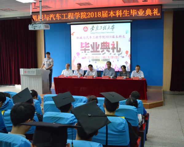 6月20日下午四点半,机械与汽车工程学院在5教117教室隆重举行2018届毕业典礼。校党委书记刘宁、学院领导伊长文、许德章、周怡、高洪、朱协彬出席典礼并在主席台就座。毕业班辅导员与2018届毕业生代表参加了毕业典礼,典礼由学院党委副书记周怡主持。