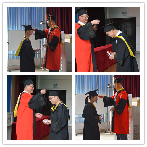 紧接着,教师代表王建平老师发表讲话,王老师回顾了四年来学校的变化以及同学们的成长历程,同时提出了七点建议与所有毕业生共勉,最后表达了老师们对学生的关心和殷切希望。随后,毕业生代表孙林发言,深切的表达了对母校、老师、父母的感激之情和即将踏入社会的坚定信心。毕业典礼的最后,由院长许德章为毕业生代表依次扶正流苏,并拍照留念,背景音乐将典礼气氛推向高潮。