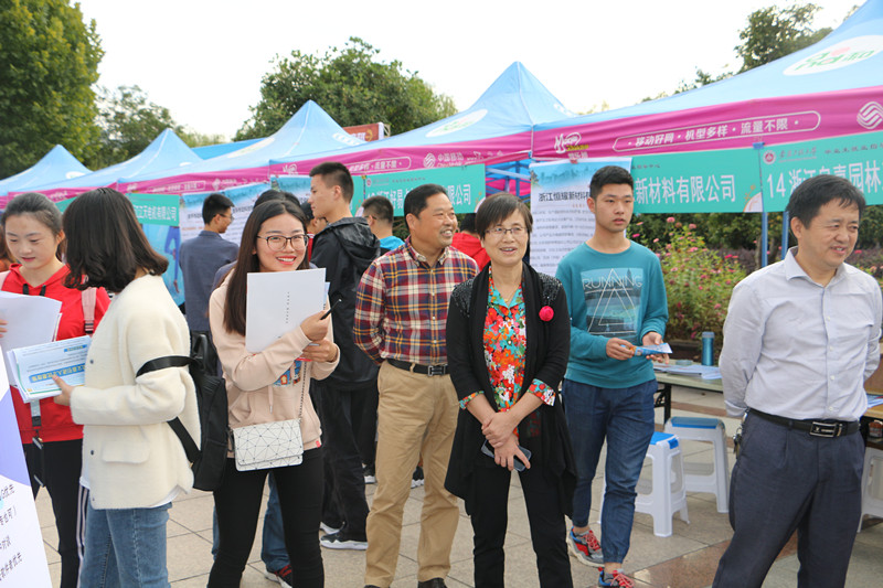 10月10日,浙江金华市,江苏南京溧水区、宜兴市及安徽安庆市联合组团招聘会在学校师生活动中心举办。校党委副书记苏国红在学生处处长张开炳、副处长李卫东的陪同下来到招聘会现场,亲切慰问参会用人单位代表、现场工作人员,并与毕业生进行交流。
