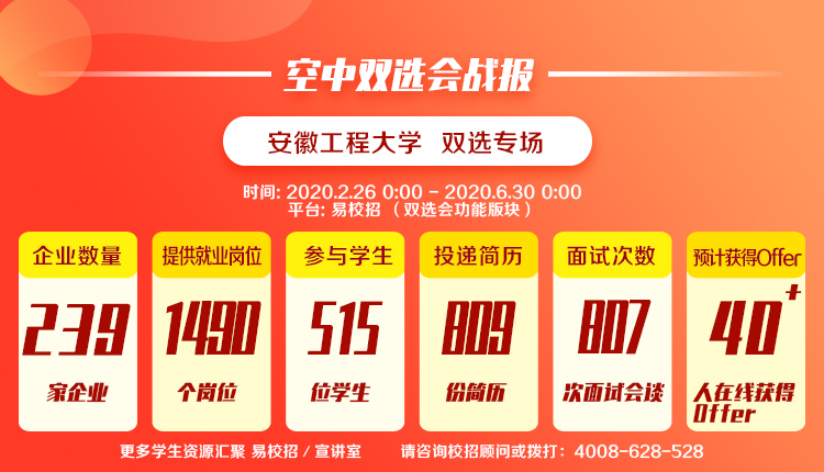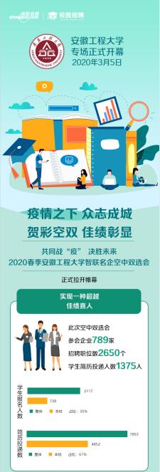 疫情防控期间,就业创业指导中心克服困难,居家办公,在举办安徽省工科(芜湖)网络招聘会的同时,主动对接各类线上招聘平台,开展新安人才网、智联招聘网、易校招等4场空中双选会,2346家企业通过审核参会,提供职位数10728个,投递简历数达6800余份。各学院发动教职工,主动利用各种资源和渠道,联系优质对口企业并了解企业用工需求,按照学校就业工作考核要求,举办了机械类、电气类、建工类、艺术类、计算机类等行业性空中双选会。当前,就业创业指导中心正在联系线上招聘平台,计划开展金融人文外语类空中双选会,实现双选会行业全覆盖。另外主动与地方人力资源社会保障部门联系,共享招聘资源,发布了合肥、芜湖、南京、苏州、杭州、嘉兴等15地市线上招聘信息。学校已全面推行毕业生网签系统,用人单位网上发布信息,网上宣讲,毕业生网上投递简历,网上面试。供需双方达成协议,可以网络签约,保障学生网上求职无障碍。