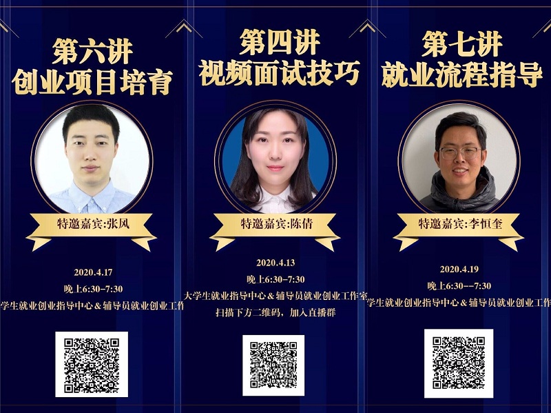 4月6日,由大学生就业创业指导中心主办、就业创业辅导员工作室协办的2020届毕业生线上就业创业指导系列讲座正式上线,并于4月19日顺利结束。我校就业工作一线老师和毕业生共计2000余人在线收看学习。
