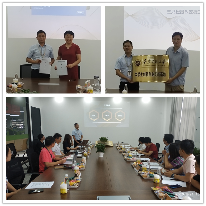 双方举行了共建大学生创新创业实践基地授牌仪式,计算机与信息学院与三只松鼠股份有限公司签订了大学生就业实训基地合作协议。