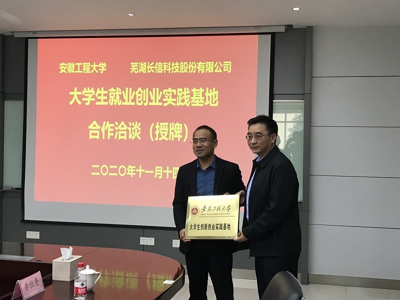11月14日,校党委常委、副校长郑健带队赴平板显示器件中真空薄膜材料龙头企业、重点用人单位——芜湖长信科技股份有限公司进行实地走访,并为企业授牌,建立创新创业实践基地。公司总裁、我校知名校友郑建军,公司行政总监黄红等接待了郑健一行。