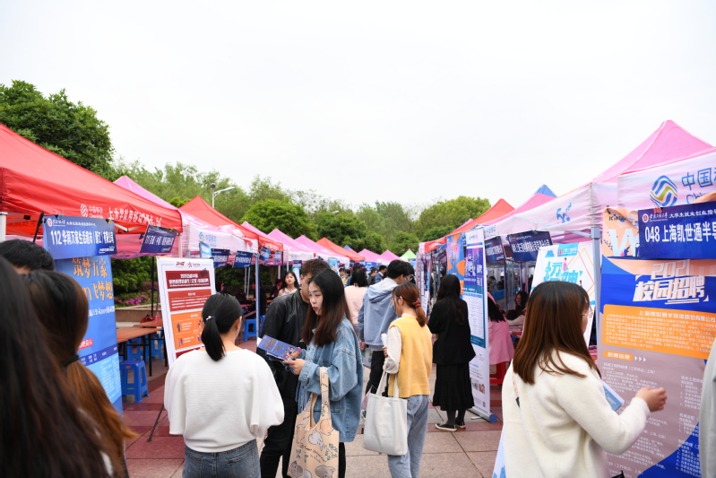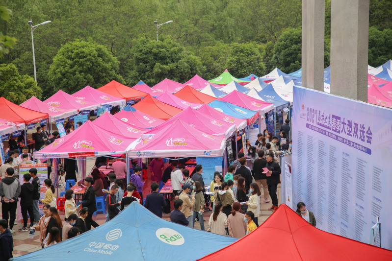 4月21日,校2021届春季大型双选会和建筑工程学院2021届毕业生专场招聘会在师生活动中心广场举行。共有省内外300余家用人单位参会。招聘会现场人头攒动、气氛热烈。