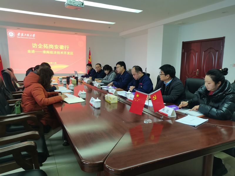 为贯彻落实党中央、国务院关于高校毕业生就业工作的决策部署,扎实开展“人才安徽行”系列活动,促进我校毕业生投身现代化美好安徽建设。1月17日-18日,学生处副处长杜松涛、外国语党委副书记李校林、设计学院党委副书记彭海燕、学生处相关人员等一行5人,前往蚌埠和淮南访企拓岗。