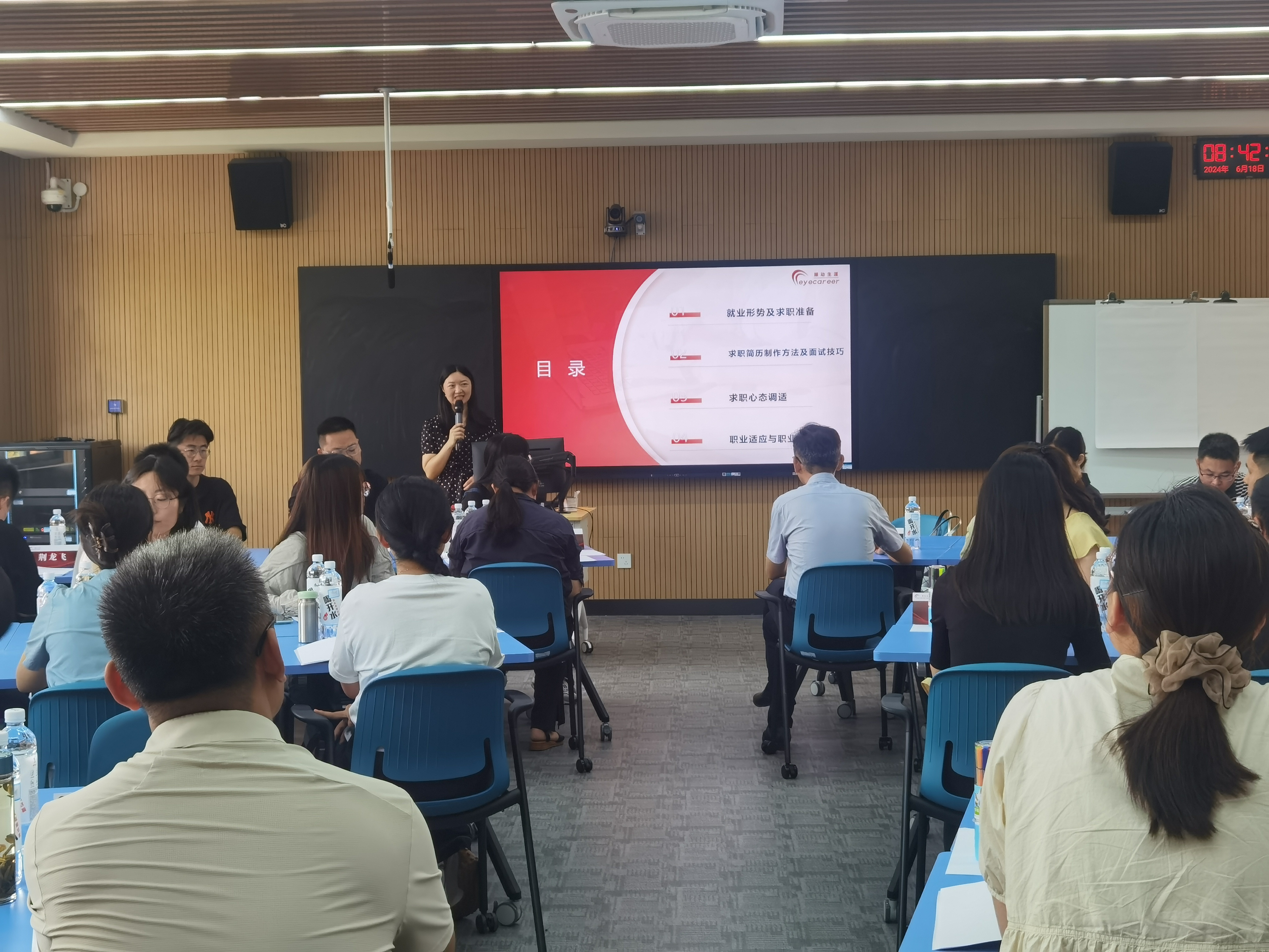 培训内容包含了大学生就业形势及求职准备、求职简历制作方法与面试技巧、求职心态调试、职业适应与职业发展等多个主题。课程采取理论讲解、情境体验和互动问答等形式开展。