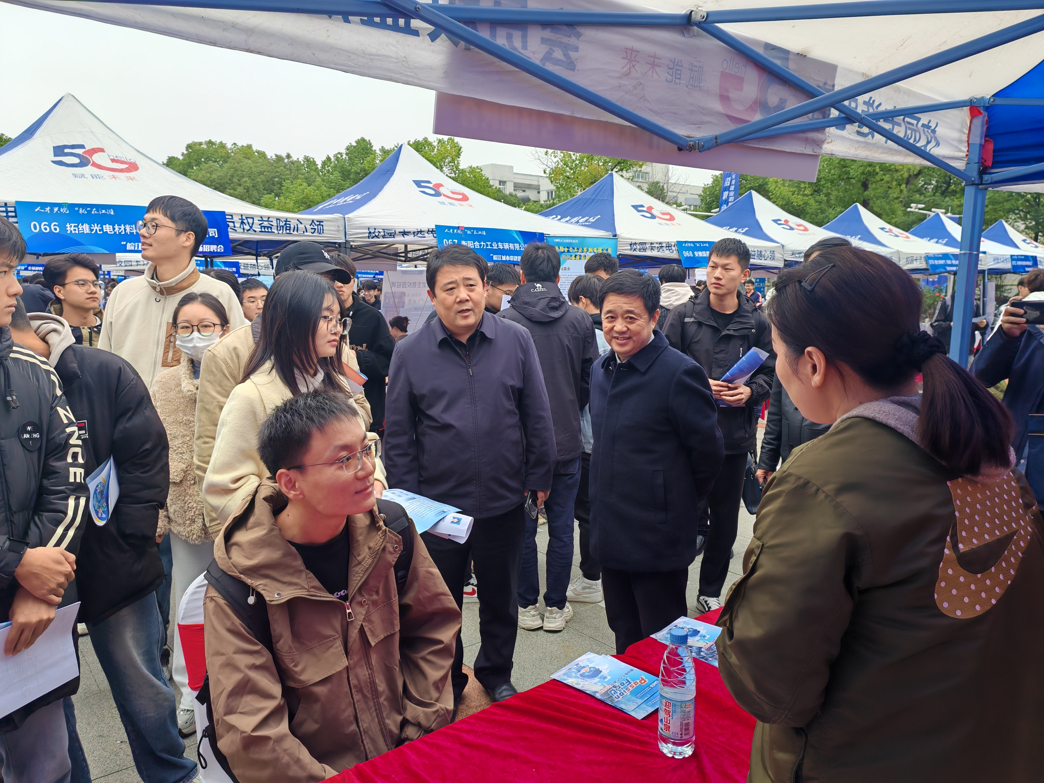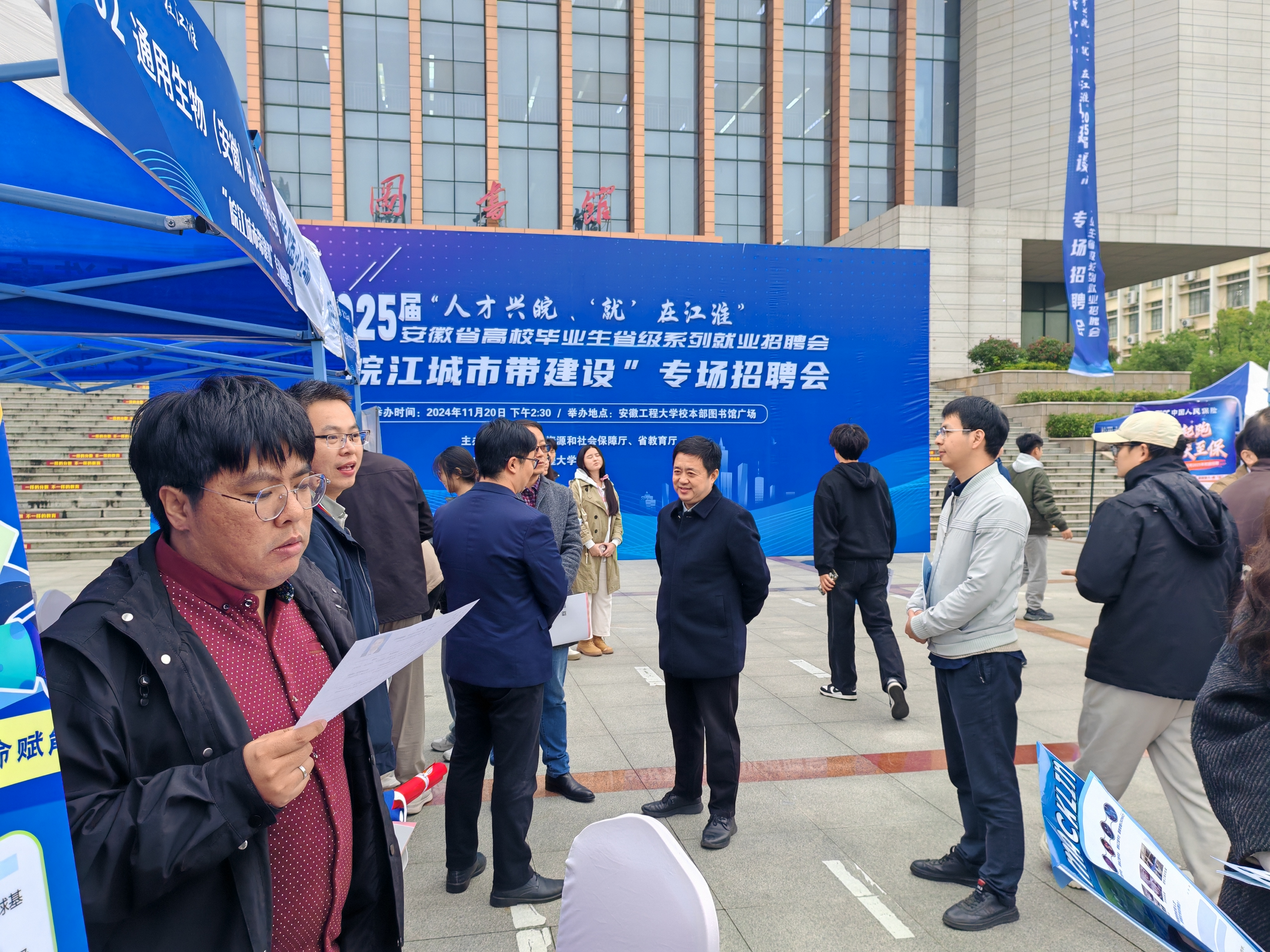 11月20日下午,由省人力资源和社会保障厅和省教育厅联合主办,省大中专毕业生就业指导中心和我校共同承办的“人才兴皖、‘就’在江淮”安徽省2025届高校毕业生省级系列就业招聘会“皖江城市带建设”专场招聘会在我校成功举办。省大中专毕业生就业指导中心主任张秋田,校党委常委、副校长张开炳亲临现场指导。
