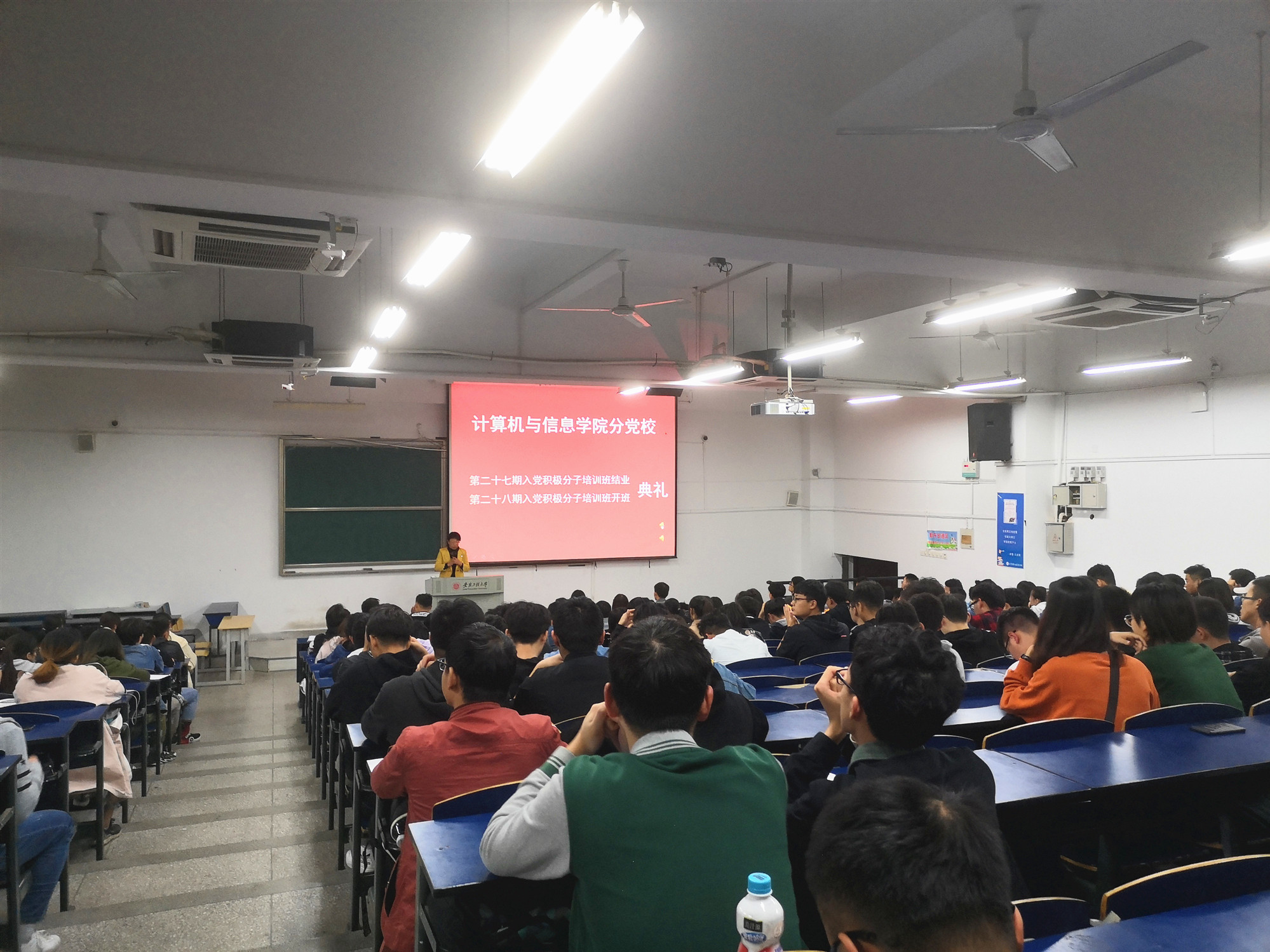 第二十八期入党积极分子培训班汪典典同学在发言中代表新学员承诺会珍惜学习机会,遵守管理规定,争取学有所获。章靖平要求各位学员坚定理想信念,认真学习,提高政治素质,希望并欢迎他们尽早加入党组织。孙力力向新学员们宣读了培训班的要求和考核办法,对后期的学习进行了详细的安排,并表示希望学员们珍惜这次学习的机会,认真完成培训任务,争取最大收获。