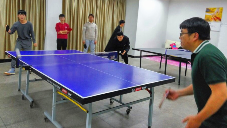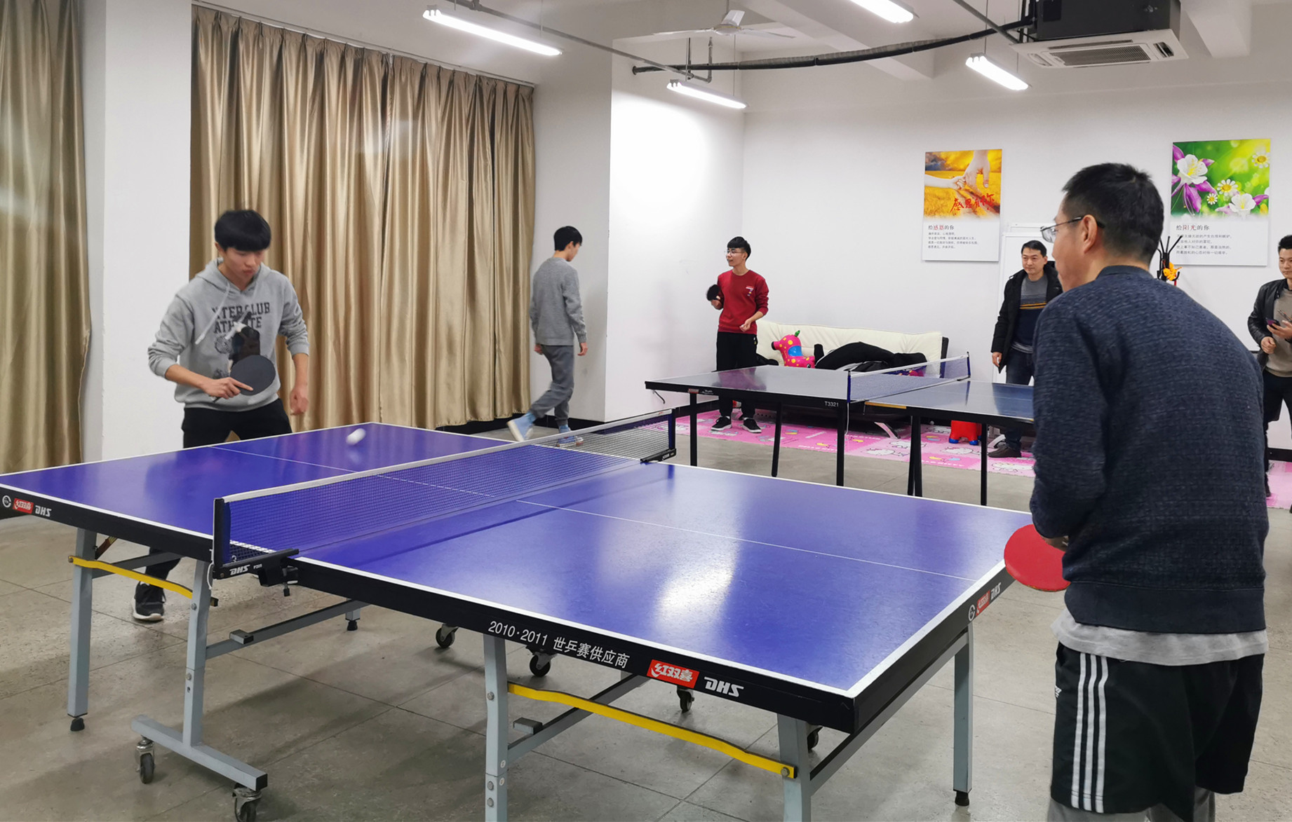 12月12日下午计算机学院在C705举行了教工队与19级学生连队的乒乓球友谊对抗赛