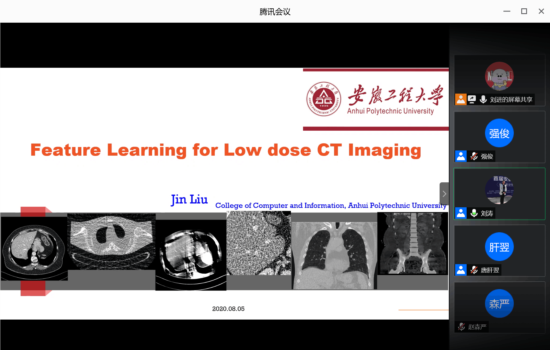 2020年8月5日晚19:30,计算机与信息学院讲师、硕士生导师刘进博士通过腾讯会议作题为“特征学习的低剂量CT成像”的学术报告,报告由计算机与信息学院副院长刘涛主持,学院部分老师,全体研究生和部分本科生聆听了本次报告。