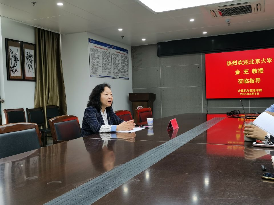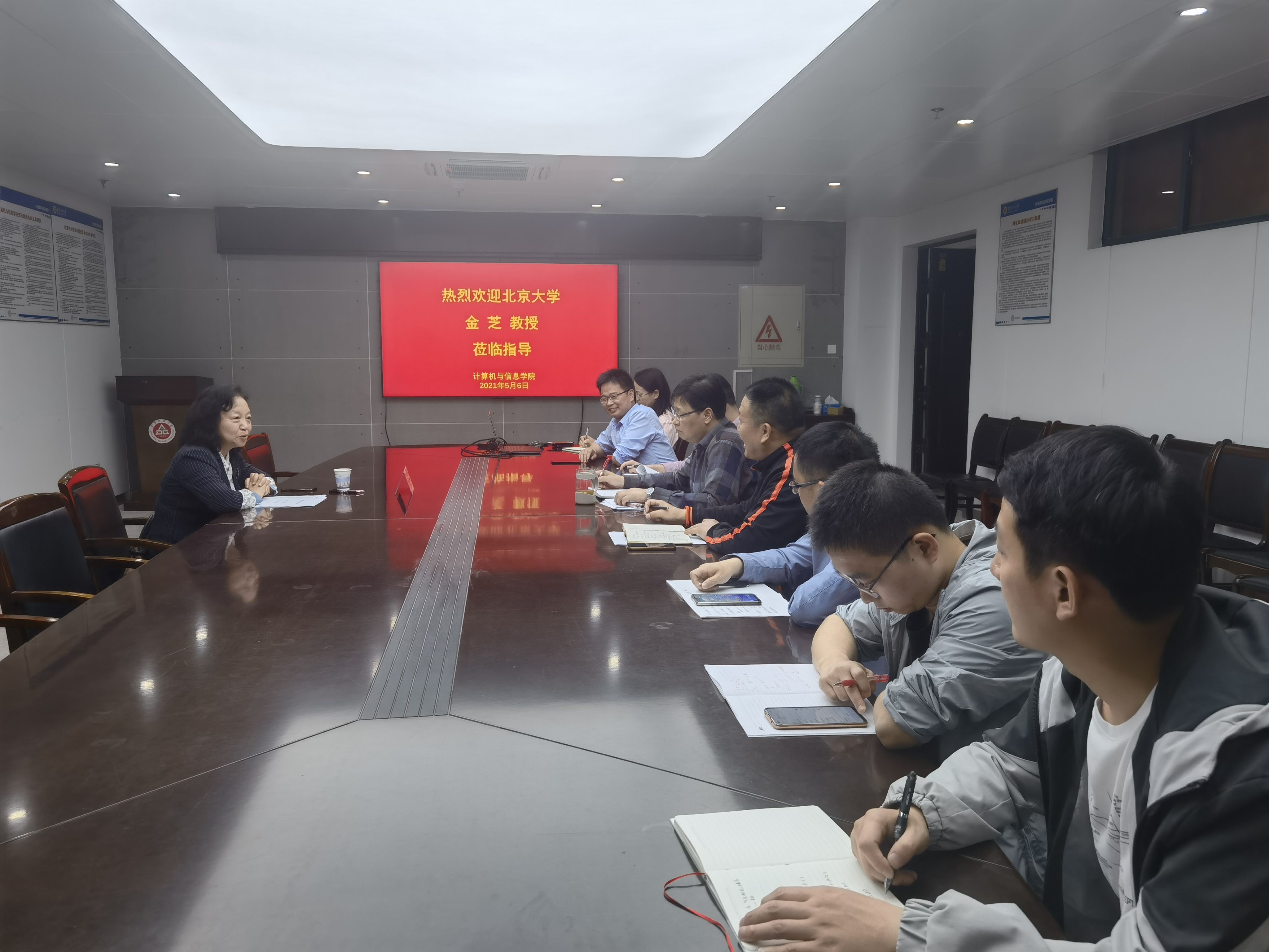 为了加快我院高原学科和计算机应用技术重点实验室建设工作,推动硕士点建设,提高我院研究生的培养质量,实现未来可持续发展,5月6日下午,计算机与信息学院邀请国务院学科评议组专家、北京大学金芝教授来我院就软件工程学科建设和重点实验室建设进行了指导。计算机与信息学院院长汪军、副院长刘涛、部分硕士生导师代表和研究室负责人参加了交流研讨会。