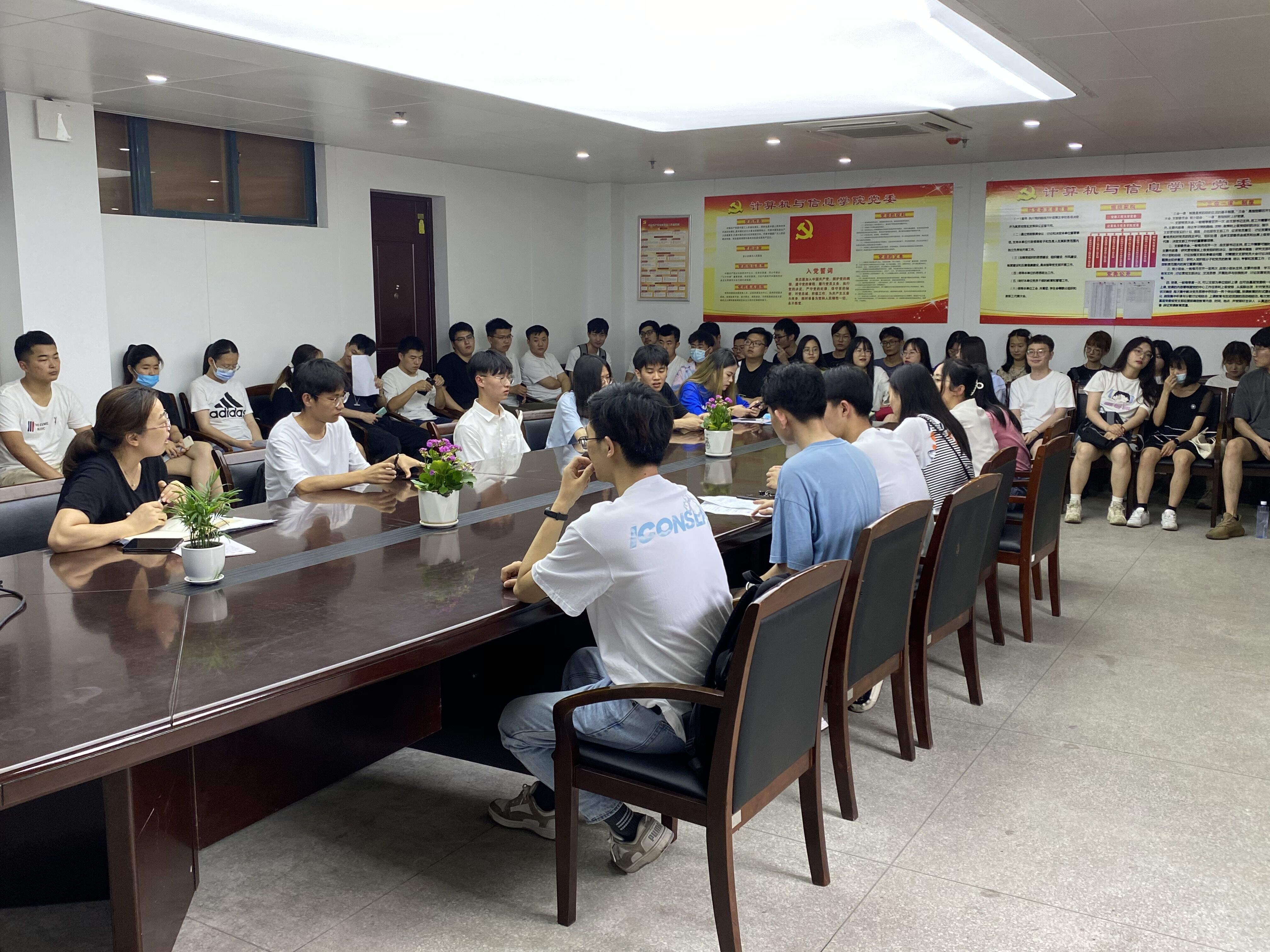 为帮助学生更好了解就业和考研形势,引导学生树立正确的就业观,6月17日下午,计算机与信息学院信息管理与信息系统专业学生党支部在C座622会议室举办考研和就业专场分享交流会。全体学生党员,2018级数据科学与大数据技术专业学生参加了交流会,会议由支部书记罗国旗主持。