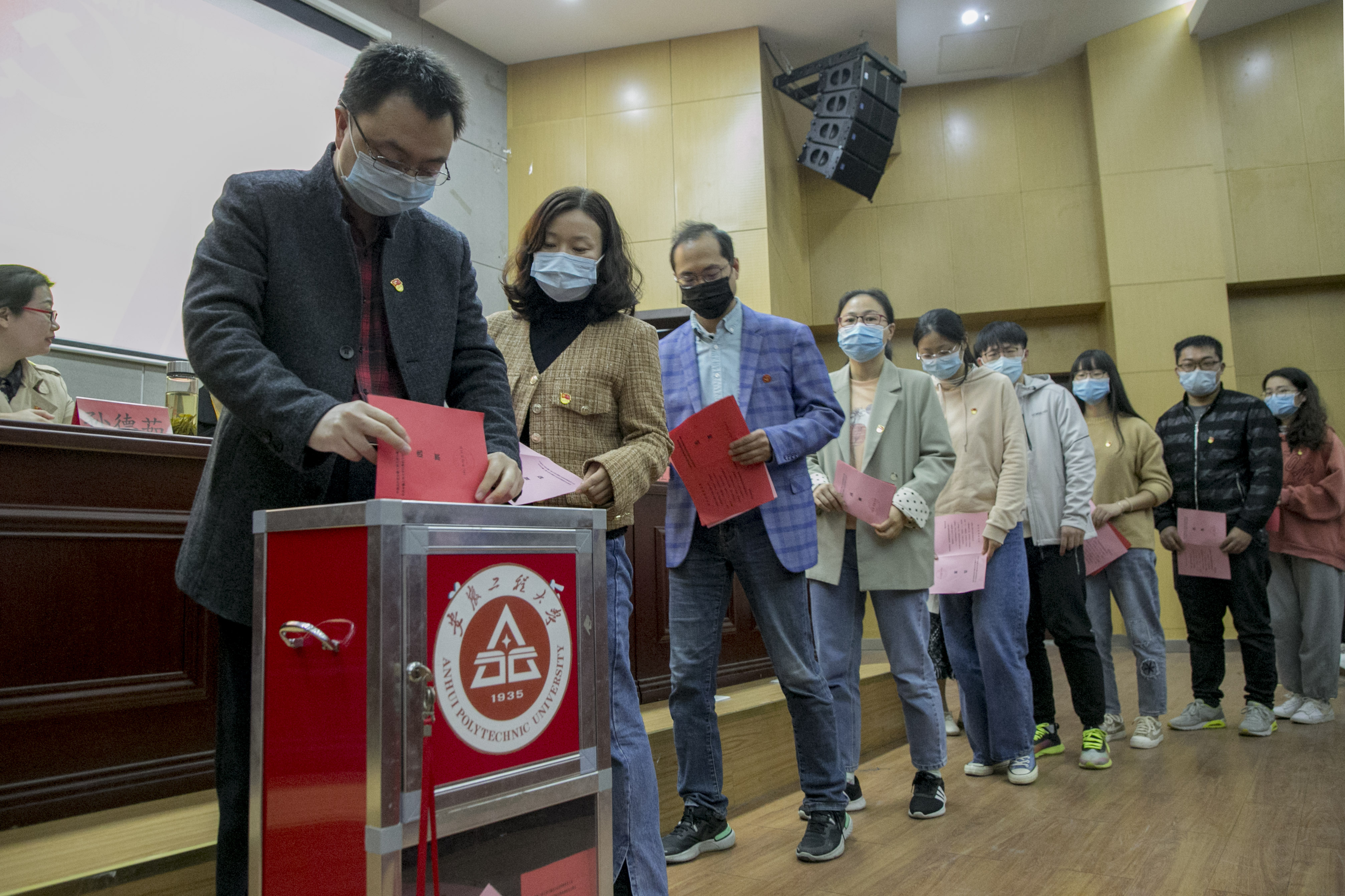校党委常委、副校长费为银,校党委组织部副部长章靖平,学院上一届党委委员,全体师生党员和特邀代表出席大会。大会由汪军主持。14时45分,大会在雄壮的国歌声中拉开帷幕。
