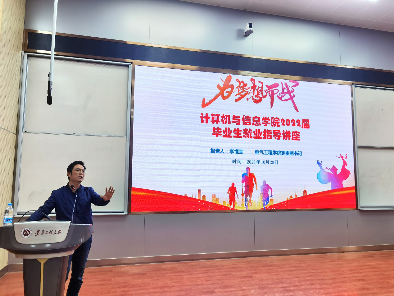 为帮助2022届毕业生更好地掌握求职技巧,切实做好毕业生就业指导服务工作,10月28日下午,计算机与信息学院2022届毕业生就业指导专题讲座在二教报告厅举行,电气工程学院党委副书记李恒奎应邀为学院毕业生讲授就业指导知识,全体毕业班辅导员及300余名毕业生参与了本次讲座,会议由学院党委副书记孙德茹主持。
