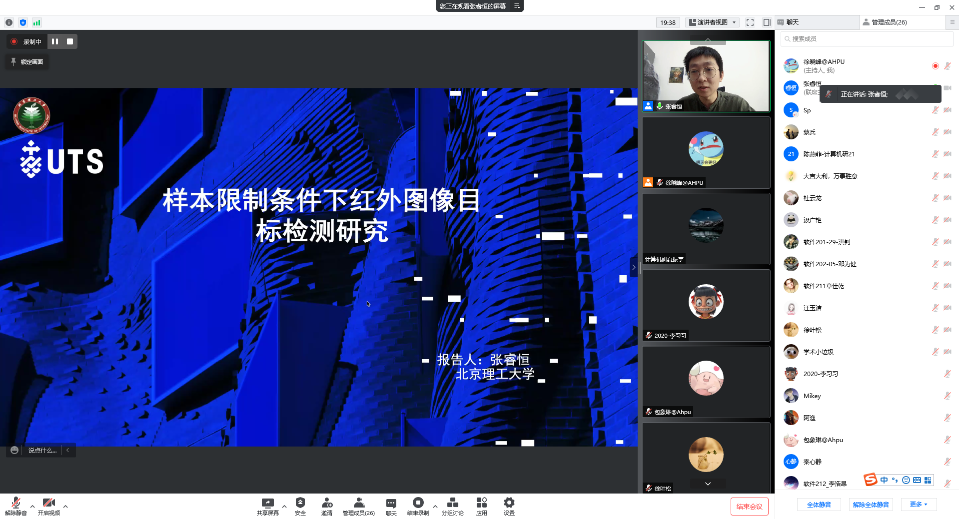 报告结束后,张睿恒博士就参会师生提出的问题进行了详细解答,并就红外图像目标检测方向的学习研究给出了建议。