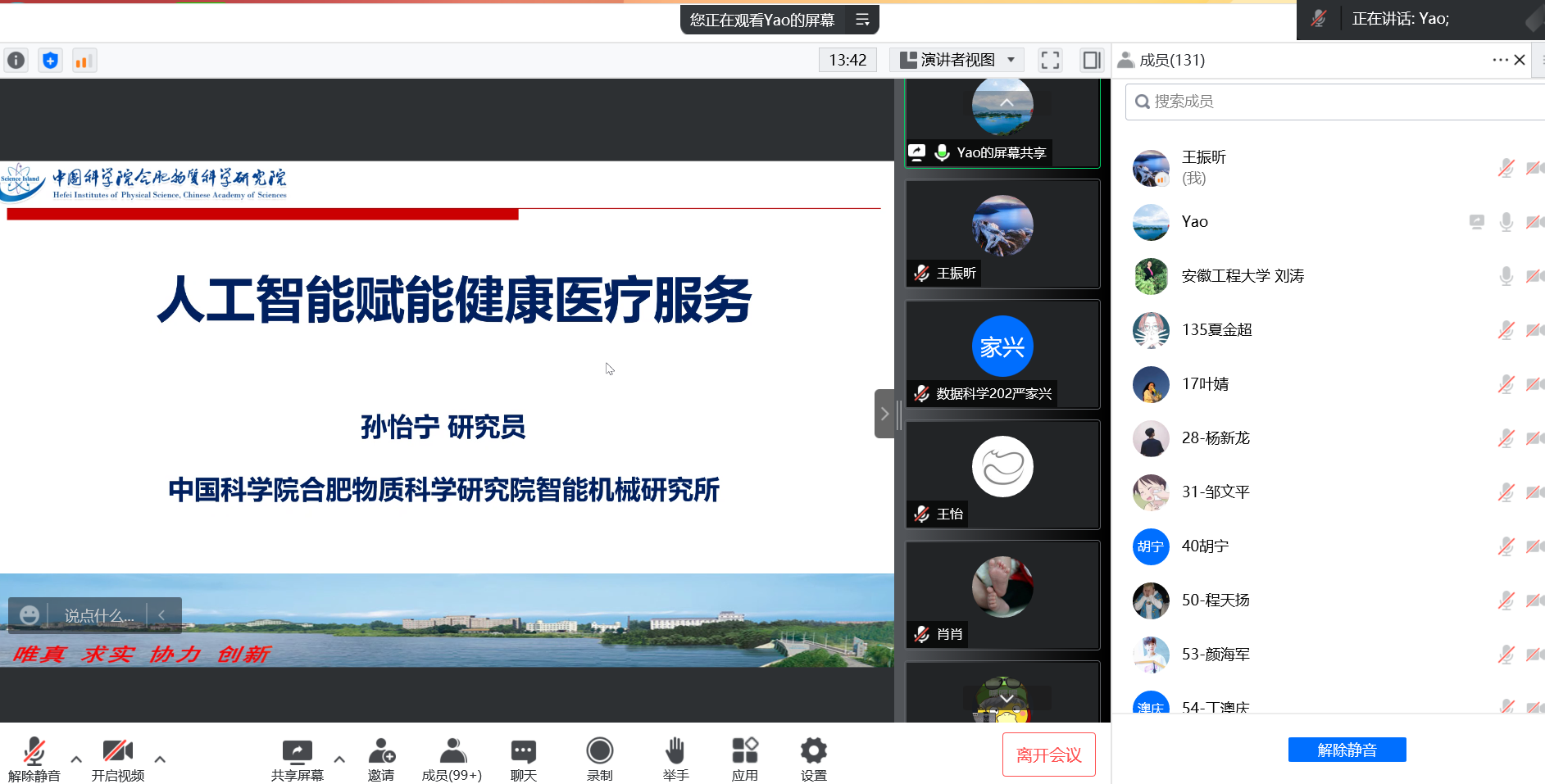 5月12日下午,应计算机与信息学院邀请,中国科学院合肥物质科学研究院博导孙怡宁教授,硕导姚志明教授通过腾讯会议分别作了题为“人工智能赋能健康医疗服务”和“人工智能应用(帕金森病量化诊疗与智慧监护)”的报告。该系列报告是计算机与信息院雷竞技rebent 月系列报告的第四场,学院部分老师、研究生、本科生聆听了本次的报告会,会议由刘涛教授和刘三民教授分别主持。