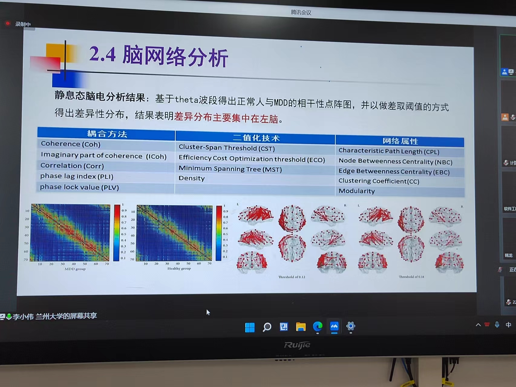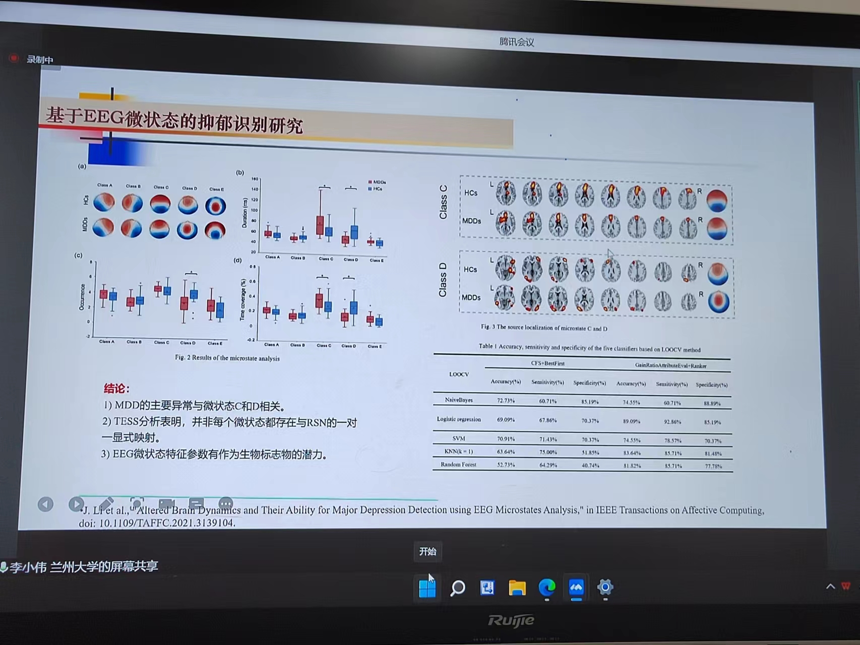 目前,脑电信号分析及应用是国际学术界的研究热点。脑电的产生机理及常见分析方法,面向抑郁识别的脑电数据分析处理算法及模型设计,抑郁识别和BCI领域的研究现状和研究方法等问题一直是国际学术界的研究核心问题之一,李小伟在报告中深入探讨脑电信号分析前沿和面临的挑战,他在报告中给出了脑电信号分析及应用的研究进展和个人的思考。