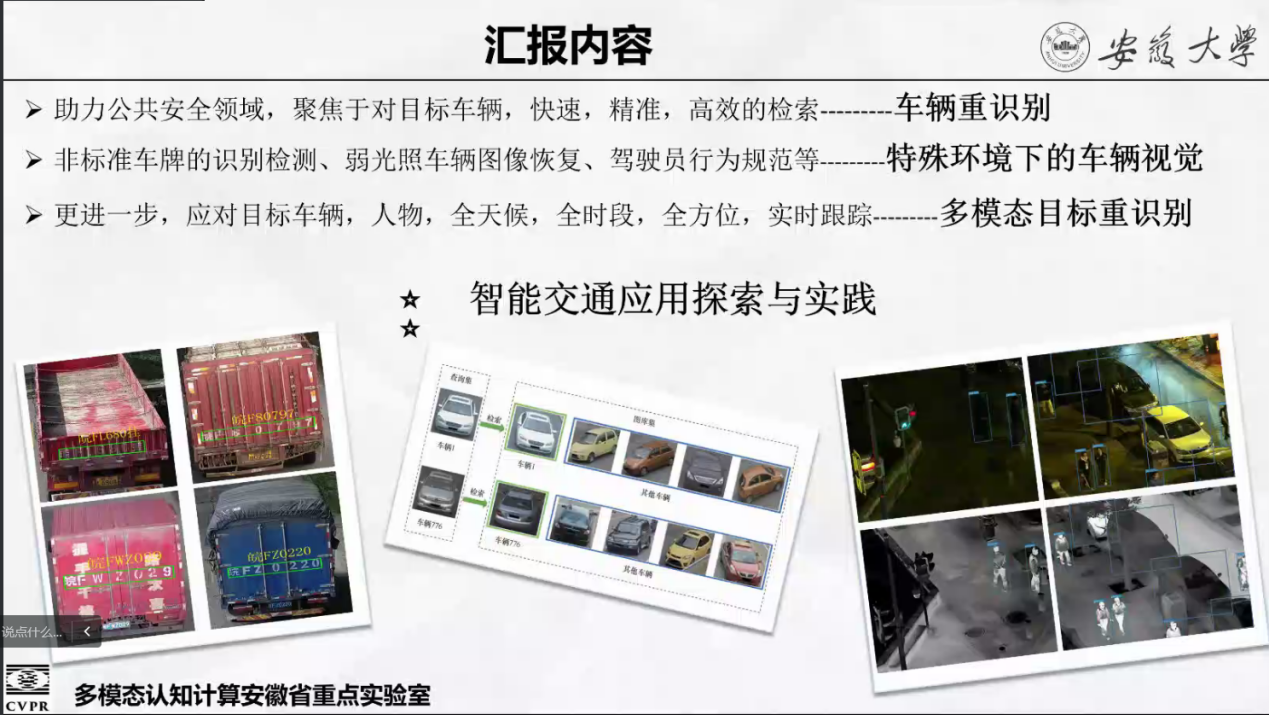 汤进的报告主要围绕面向复杂交通场景和环境的鲁棒视觉感知关键技术研究展开。他首先介绍了智能交通目前面临的挑战,然后从车辆重识别、非标车辆检测识别和多模态目标重识别三个角度分介绍了相关研究工作,最后讲述了目前阶段的智能交通在实际应用中的一些探索与实践。