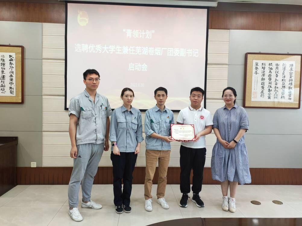 为推动校团委“1+14”共建项目高质量开展,加强与共建单位深入合作,6月30日,计算机与信息学院团委赴芜湖卷烟厂举行“青领计划”选聘优秀大学生兼任基层团委副书记启动会。芜湖卷烟厂团委书记张明虎、团委委员陶思远、汪琪,计算机与信息学院团委副书记吕寅、选聘大学生杨帅帅参加。