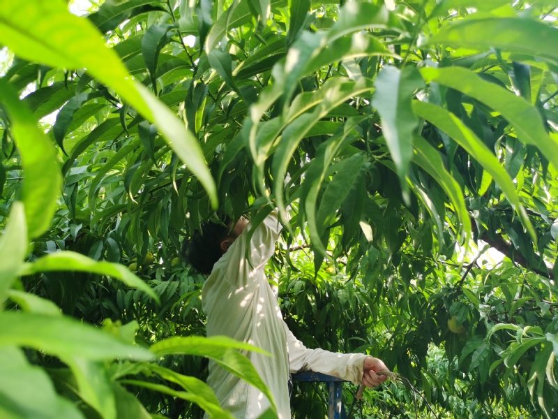 调研中,在村民的带领下,团队成员到田间亲手实践采摘新鲜桃子,通过亲身体验田间劳作,同学们更加深刻地体会到劳动的艰辛与不易。