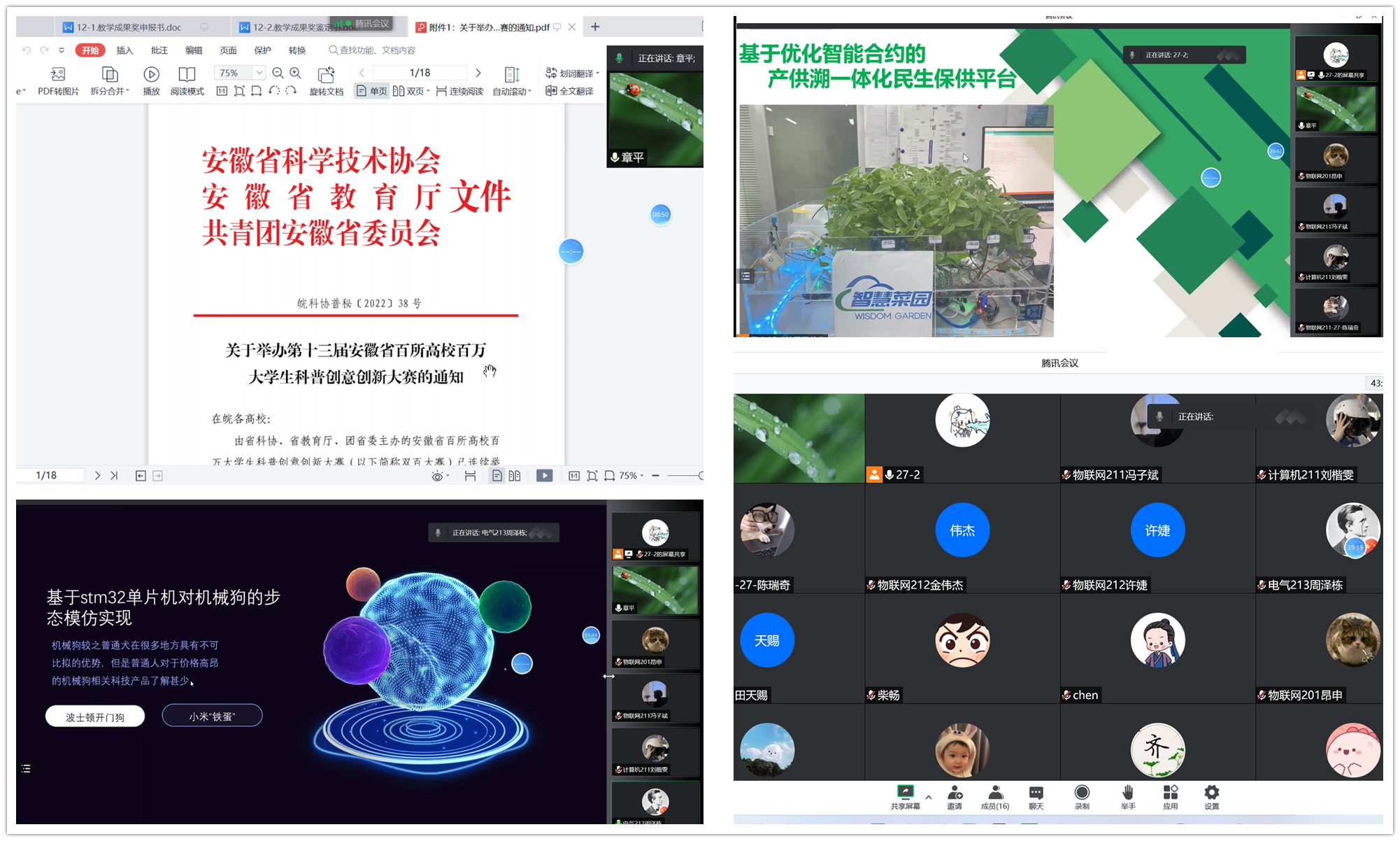 “双百大赛”是安徽省创新创业类竞赛的重点赛事之一,旨在引导在校大学生弘扬科学精神,积极参与科学传播实践,锻炼增强创新创业能力,推动形成大众创业、万众创新的良好社会氛围。作为物联网开放创新活动室的优势参赛项目,创作成员和指导教师充分重视,后期将整合优势资源,争取取得优异成绩。
