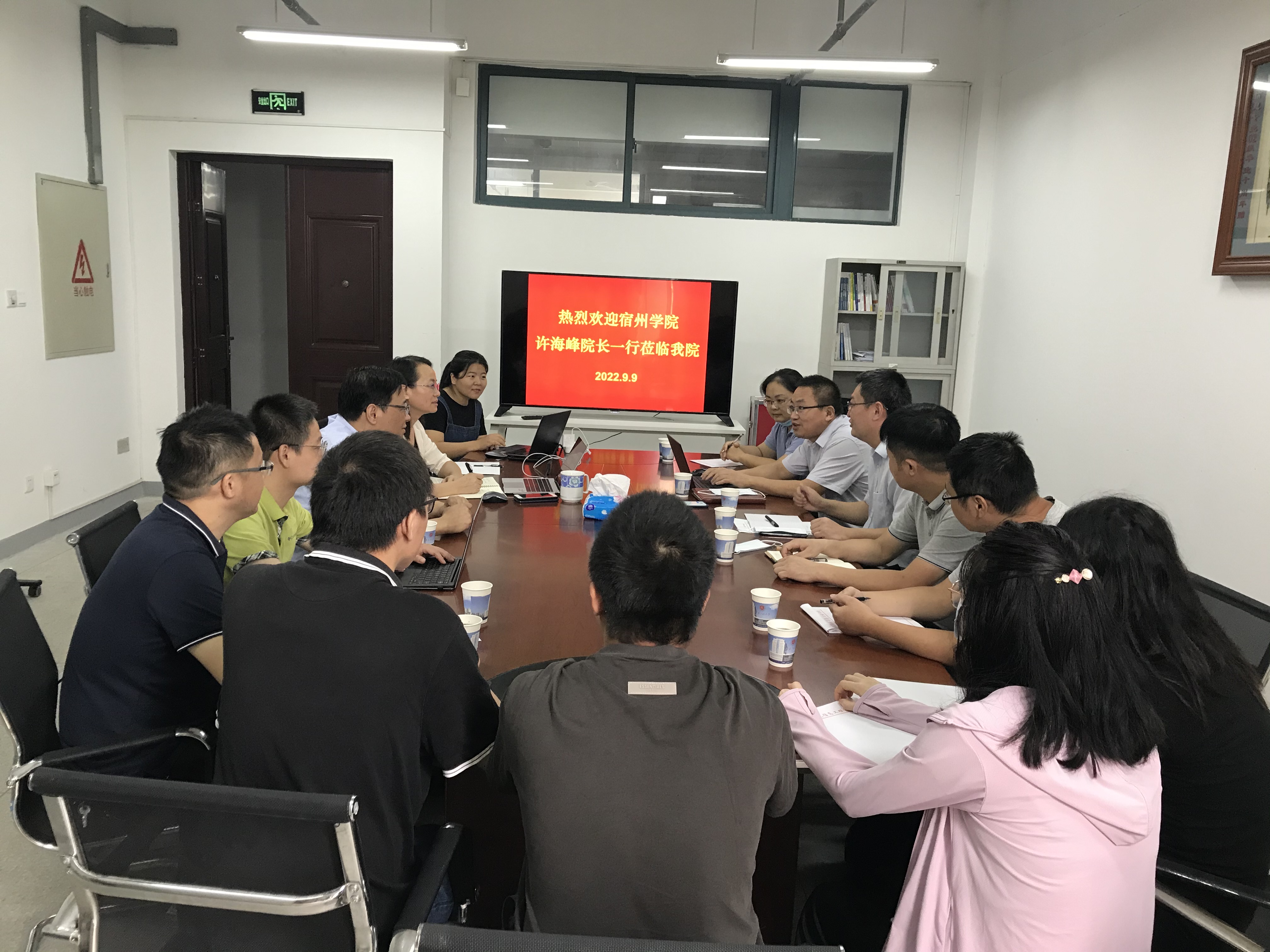 9月9日,宿州学院信息工程学院院长许海峰带领副院长潘正高、各系部主任、教学秘书等一行来我院指导交流。本次交流会在C座609会议室召开,我院副院长刘涛主持,院长汪军、软件工程系主任严楠、物联网工程系主任刘三民、计算机科学与工程系副主任唐肝翌和教师代表范莉莉、伊芸芸等参加。