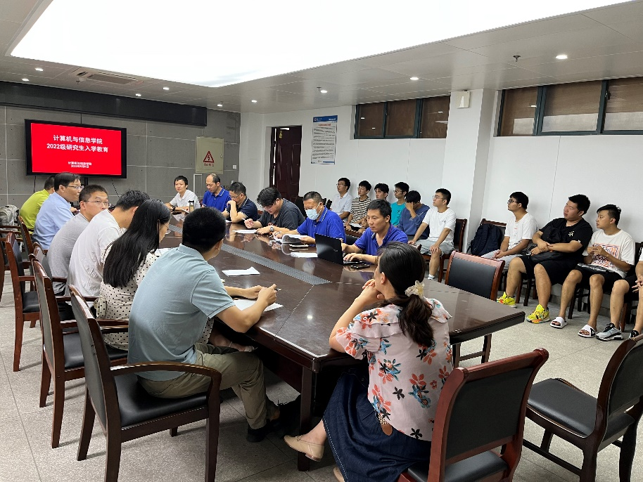9月9日,计算机与信息学院在C座622召开2022级研究生新生入学教育暨导师见面会,院长汪军、研究生秘书皇苏斌、辅导员李臣龙、全体硕士研究生导师和2022级研究生新生参加了本次会议。