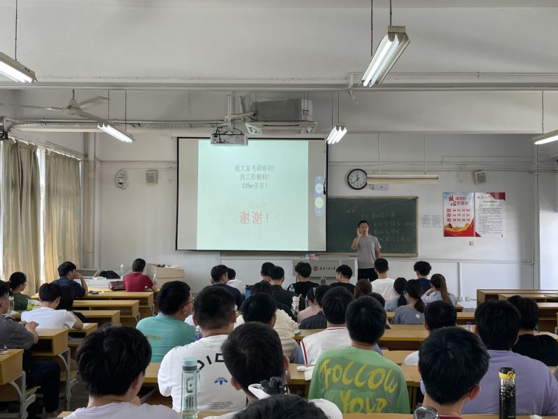 会上,徐晓峰首先向同学们介绍了考研的时间表,包括考研的预报名时间,现场确认时间和考试时间。接着,详细剖析了学年近五年的考研情况,根据历年的实际考研情况和对目标学校的分析,建议同学们根据自身情况合理选择目标院校。他把目前该专业就业前景向各位同学做了说明,鼓励同学考研的同时也要积极关注就业市场,了解行业用人需求,掌握最新前沿技术发展方向,他指出,求学和就业并不是对立的,是相辅相成的一件事,重视考研就是重视就业。在找工作时要先做好规划,多角度考虑问题,多尝试、多选择,给自己争取机会。