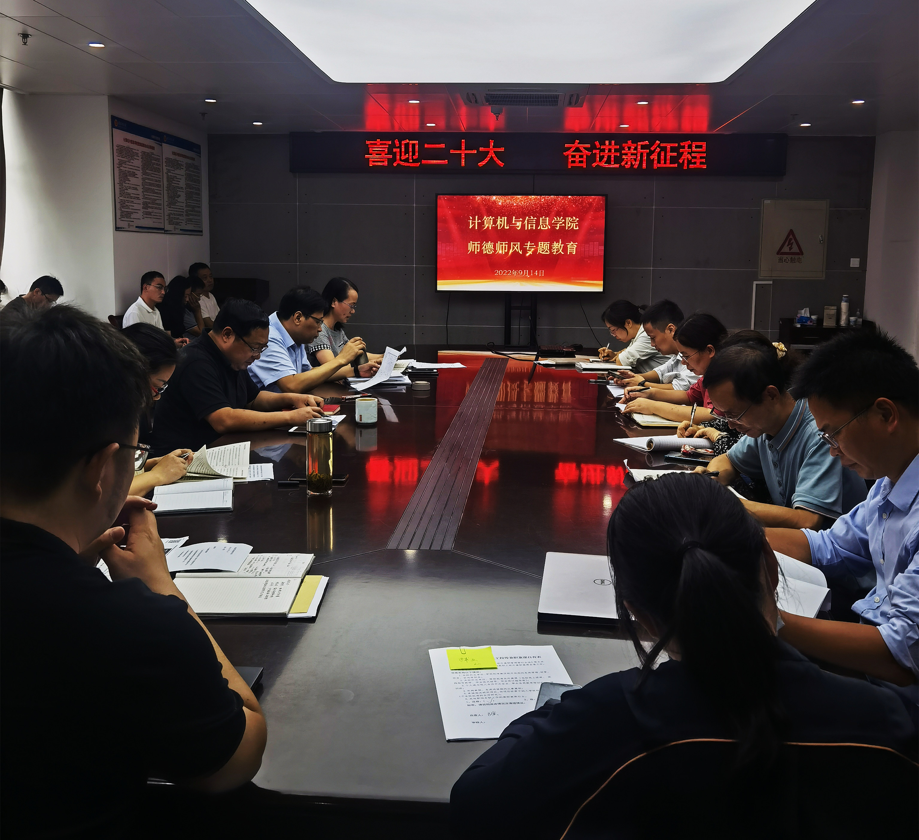 9月14日下午,计算机与信息学院组织全体教职工开展新学期师德师风专题教育。会议由学院党委书记李卫东主持。
