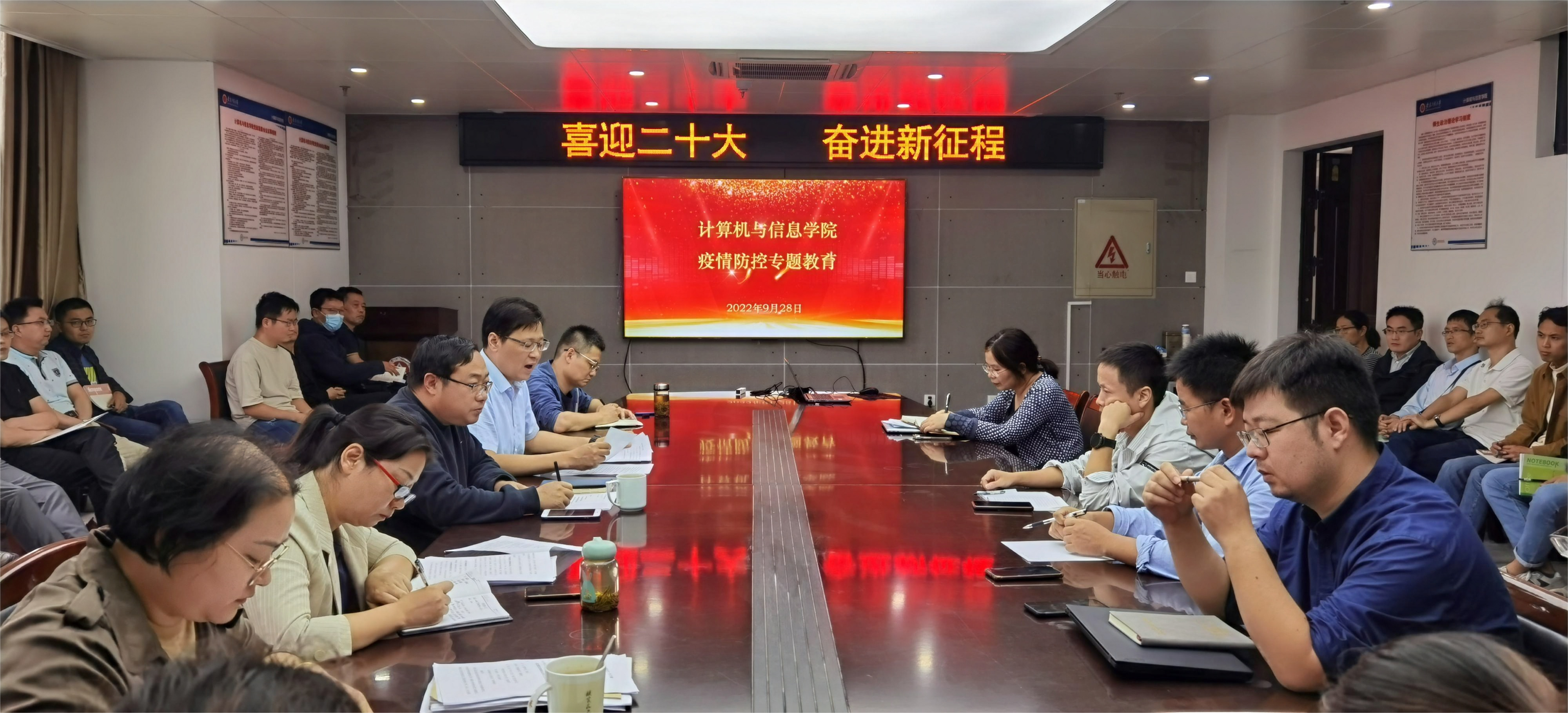9月28日,计算机与信息学院在C座622会议室开展疫情防控专题教育,全体教职员工参加了会议。会议由学院党委书记李卫东主持。