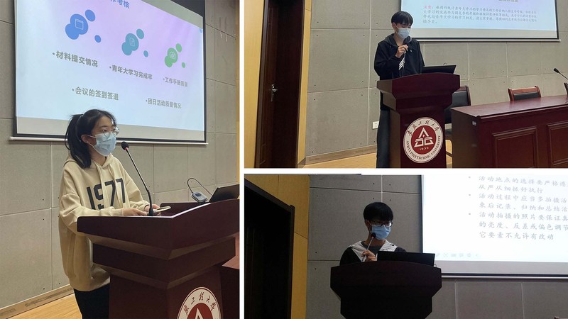 会上,吕寅就近期学院团学工作进行了动员和布置,明确指出学院团学工作要积极围绕让学生“正”起来、“学”起来、“壮”起来、“乐”起来、“勤”起来、“和”起来六个方面开展。院青年传媒中心余光照在会上分享了关于新媒体宣传工作的注意事项,带领大家集中学习了新形势下新闻宣传工作的使命任务——举旗帜,聚民心,育新人,兴文化,展形象。院团委学生骨干依次对近期学院团学工作情况进行汇报,强调“班团一体化”建设思路,鼓励各班级开展形式多样、内容丰富的主题教育活动,详细部署了下一阶段的工作重心。其中,重点交流了“学习二十大、永远跟党走、奋进新征程”主题团日活动的开展要求和创新思路。