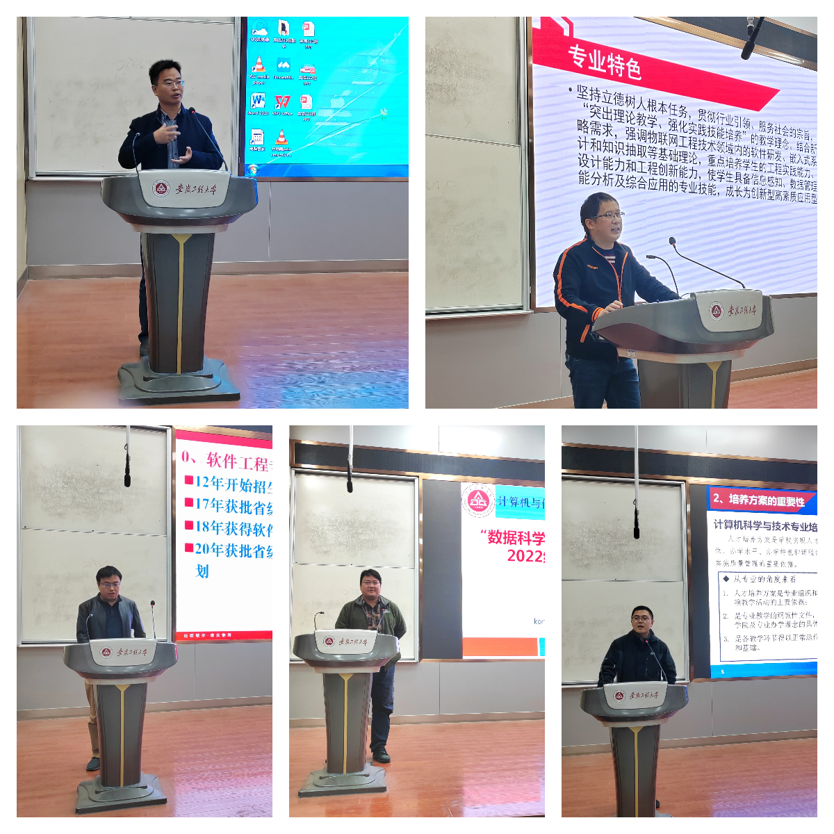 在专业培养方案宣讲阶段,物联网工程系主任刘三民结合专业培养目标,介绍专业方向设置情况,并对课程体系设置进行了解读,重点分享专业在人才培养中实施个性化培养的方法和思路。最后希望同学们能够“坚守专业阵地,深耕专业知识“,谋划个人美好蓝图。软件工程专业胡平老师首先介绍了专业的历史沿革、培养方案和专业特色,然后结合目前我们所处的后互联网时代,分析了22级增设“嵌入式软件系统”专业方向的原因、意义和前景。在强调专业知识和技术的同时,胡平老师还通过生动的示例,引导学生在今后的学习和工作中要注意对相关法律、法规、职业道德规范的了解,并坚持公众利益优先。数据科学与工程系副主任孔超分享专业培养方案制定依据,强调专业的学习不仅是知识的索取,更是思维和方法的学习,有了很好的基础,将来可以适应不断变化的社会。因此,科学地、系统地为学生设置课程,目的是为了培养学生正确的人生观、价值观、世界观、科学的思维方法以及解决复杂工程问题的能力。计算机科学与工程系刘进老师从培养目标、培养方案核心内容、个性化培养等方面做了报告。通过不断加深大家对专业培养目标的认识,让学生为达到目标而更加努力地学习;让学生对大学四年的课程及实践教育有了全面的熟悉;通过对个性化培养政策的介绍体现专业人才培养是以学生为中心的理念。