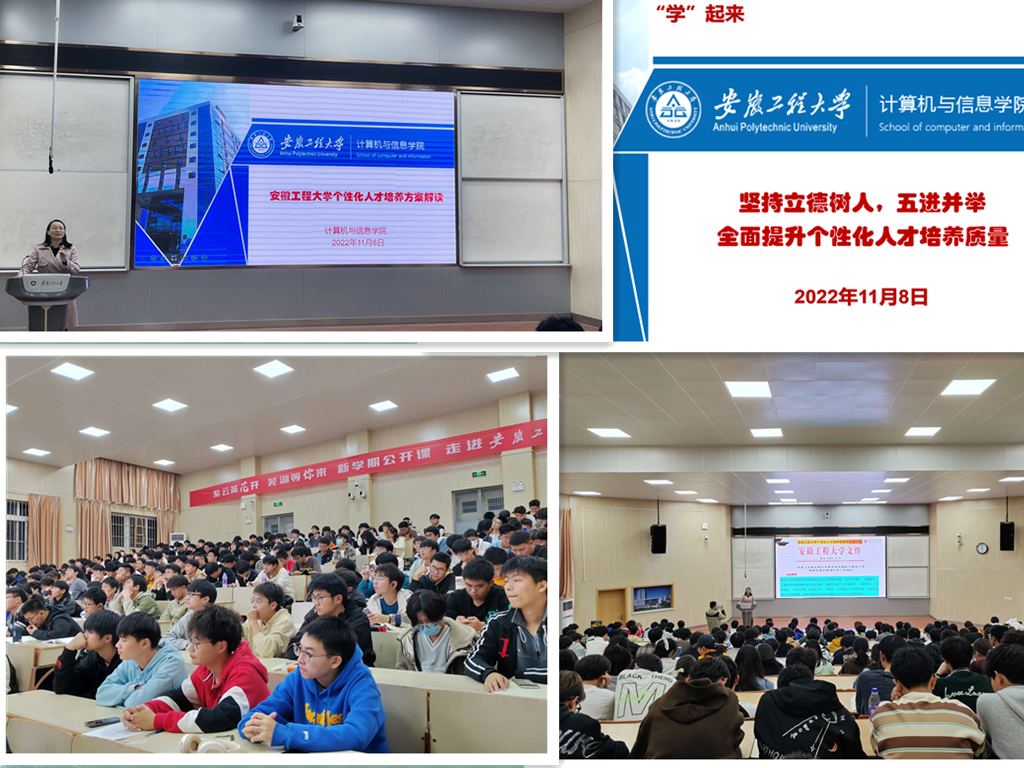 为进一步宣传《关于深化本科个性化人才培养改革的实施方案》(校字〔2022〕41号)文件精神,强化学生中心理念,帮助学生充分了解学校个性化人才培养改革及专业人才培养方案主要内容,11月8日,计算机与信息学院在2教报告厅举行个性化人才培养宣讲会。计算机与信息学院副院长刘涛、部分系主任和本科生导师代表各系部参加宣讲会,计算机与信息学院2022级全体新生参加了此次活动。