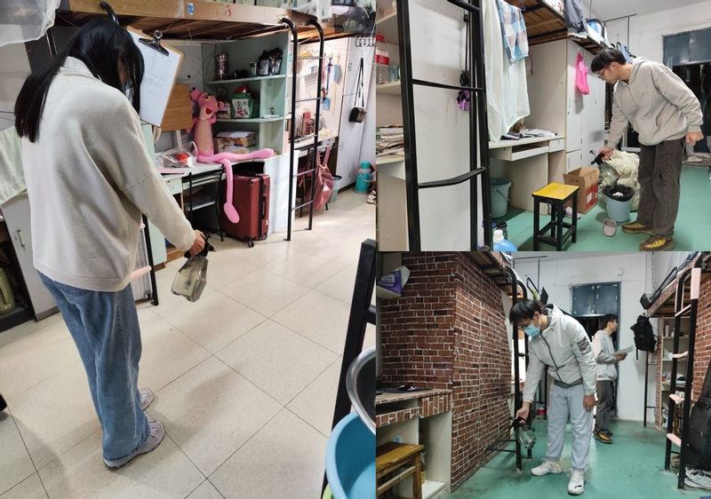 前期,学生党员深入寝室对卫生情况进行检查,并开展冬季预防流感小知识宣传,营造注重卫生和健康的氛围。在广泛动员宣传基础上,根据统一安排,学生党员针对全院开展寝室消毒活动。党员们带上工具,佩戴好口罩有序进入寝室,采用稀释后的消毒液对走廊、门后、桌下等进行全面消毒。同时,提醒同学们,日常在宿舍要多通风、勤洗手、保持桌面与地面卫生干净整洁用实际行动保持好宿舍卫生。在消毒过程中,大家都很积极配合,做到卫生死角全覆盖,确保消毒彻底。