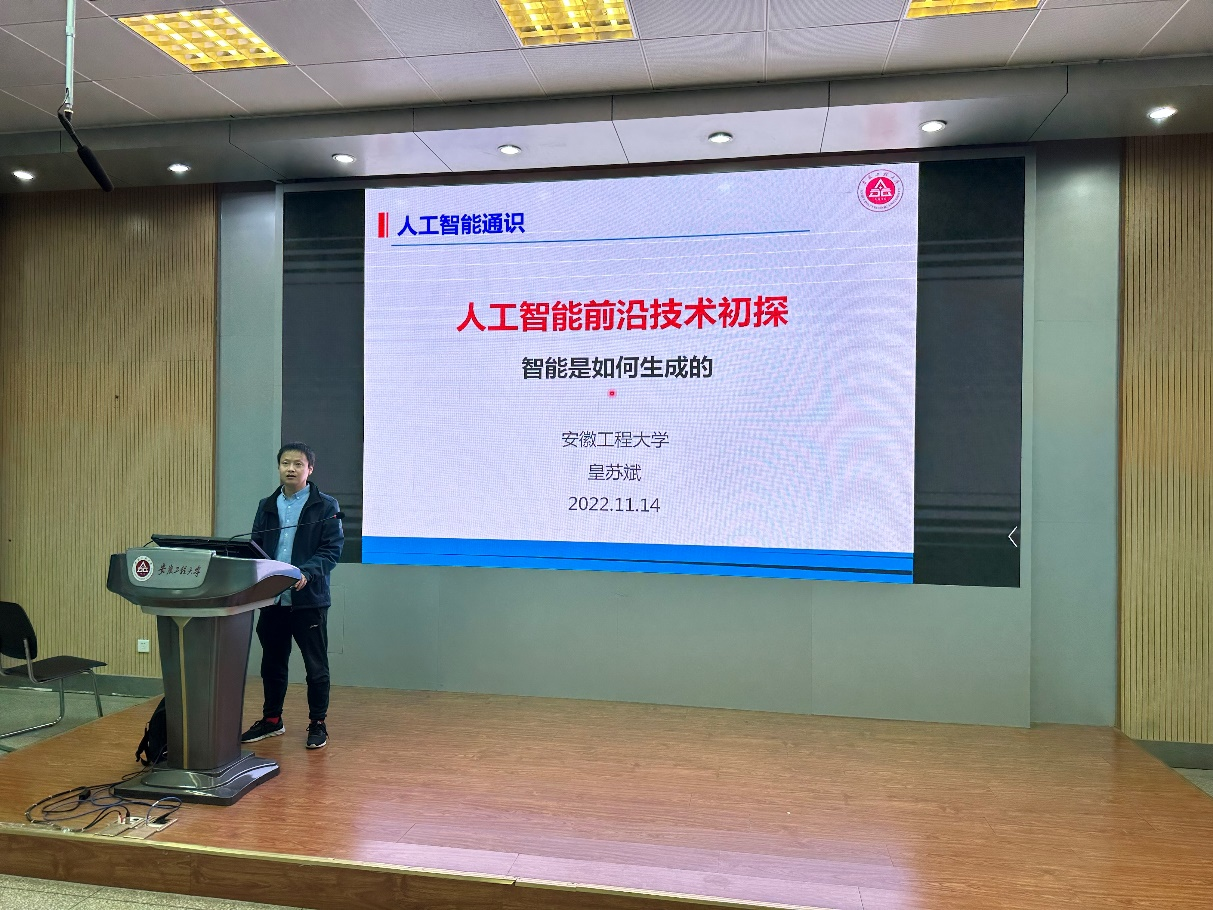 创新素养训练营首期活动是学院研究生秘书皇苏斌博士开展了题为“人工智能前沿技术初探”的主题报告,报告首先从一位AI机器人唤醒主人起床的视频开始,向同学们介绍了智能的来源和智能的生成过程;接下来,通过“专家系统”“知识图谱”等丰富的案例,向同学们展示了人工智能的威力,同时也对智能推理中可能产生的不确定因素进行了阐述;最后,皇苏斌结合报告主题,与同学们探讨了大学生涯基础科研应该如何规划。报告内容激发了同学们探索人工智能前沿技术的兴趣,现场同学与皇苏斌进行了良好的互动。