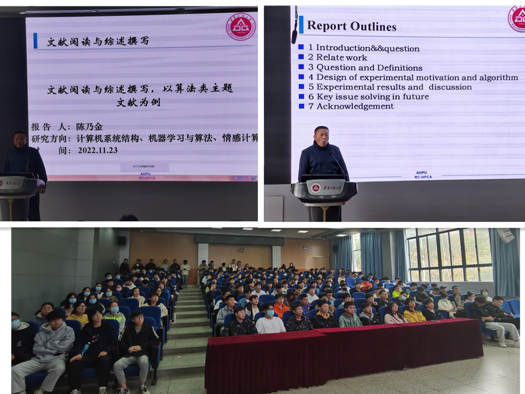 为激发学生科研兴趣、增强文献阅读和撰写能力,11月23日下午,计算机与信息学院大学生创新素养训练营第三、四期专题报告在5J117教室举行,计算机专业20级、21级和软件工程专业21级的全体学生以及本科生导师、部分研究生参加了此次报告。