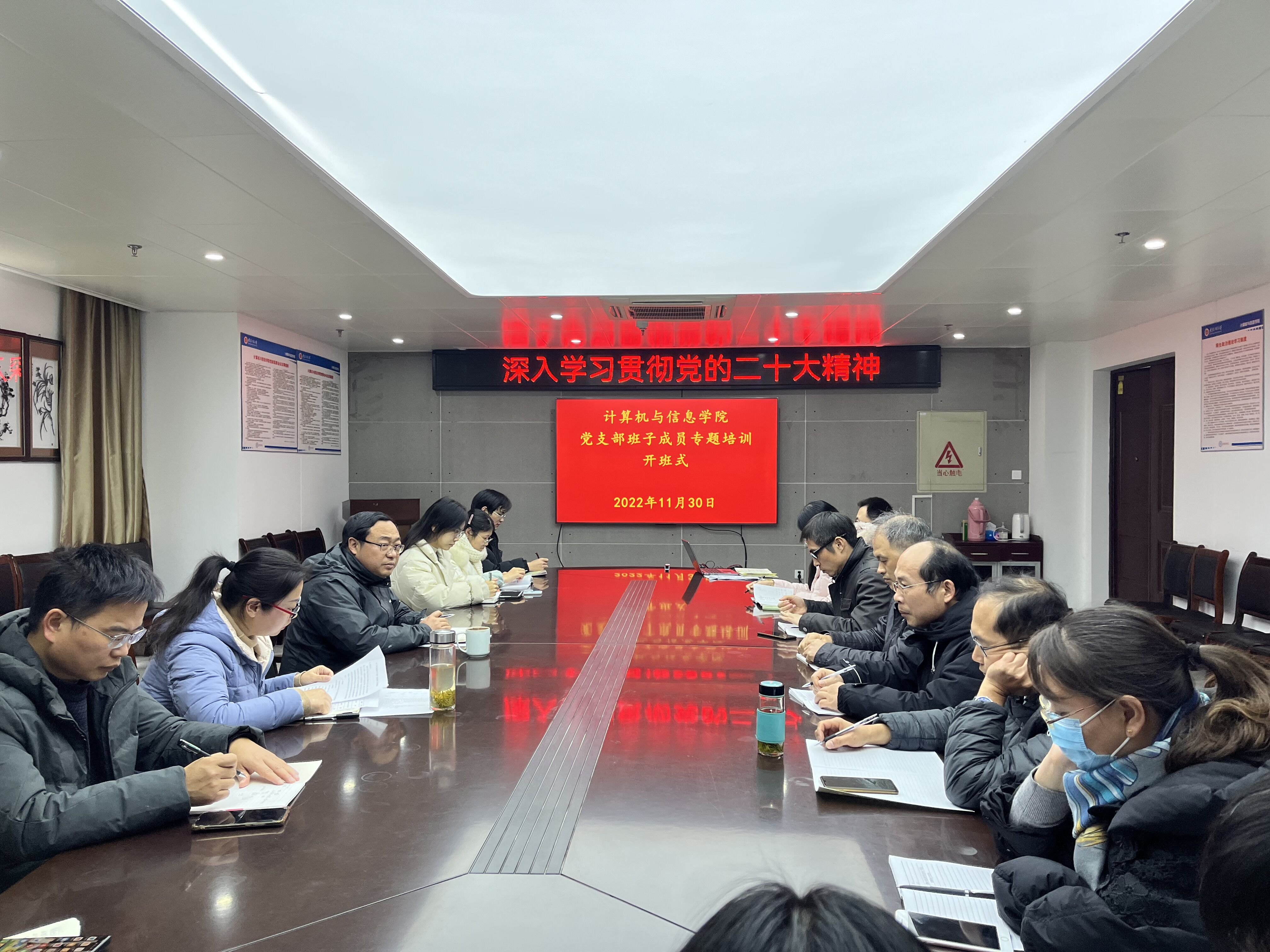 为深入学习贯彻党的二十大精神,积极响应学校《关于开展全校基层党支部班子成员培训工作的通知》,11月30日,计算机与信息学院举办了基层党支部班子成员专题培训开班式,学院各师生党支部班子成员参加。开班式由院党委书记李卫东主持。
