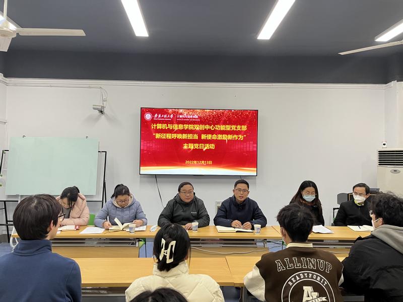 12月13日下午,计算机与信息学院双创中心功能型党支部开展以“新征程呼唤新担当 新使命激励新作为”为主题的党日活动。院党委书记李卫东、党委副书记孙德茹以及双创中心负责人出席,校团委副书记兼学工部副部长李恒奎、校组织部副部长朱文明莅临指导。
