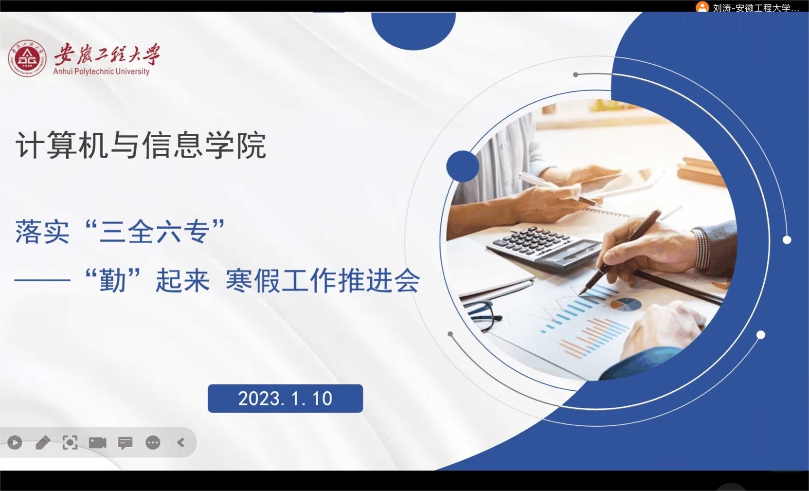 为进一步落实“三全六专”育人理念,深化劳动教育实践,帮助学生树立劳动观念,强化劳动能力,发挥劳动在促进学生成人成才过程中的作用。1月10日,计算机与信息学院召开“三全六专”专题——“勤起来”寒假工作推进会,会议采取腾讯会议方式线上进行,由学院副院长刘涛主持,负责各班级劳动教育实践的10余位教师参加。
